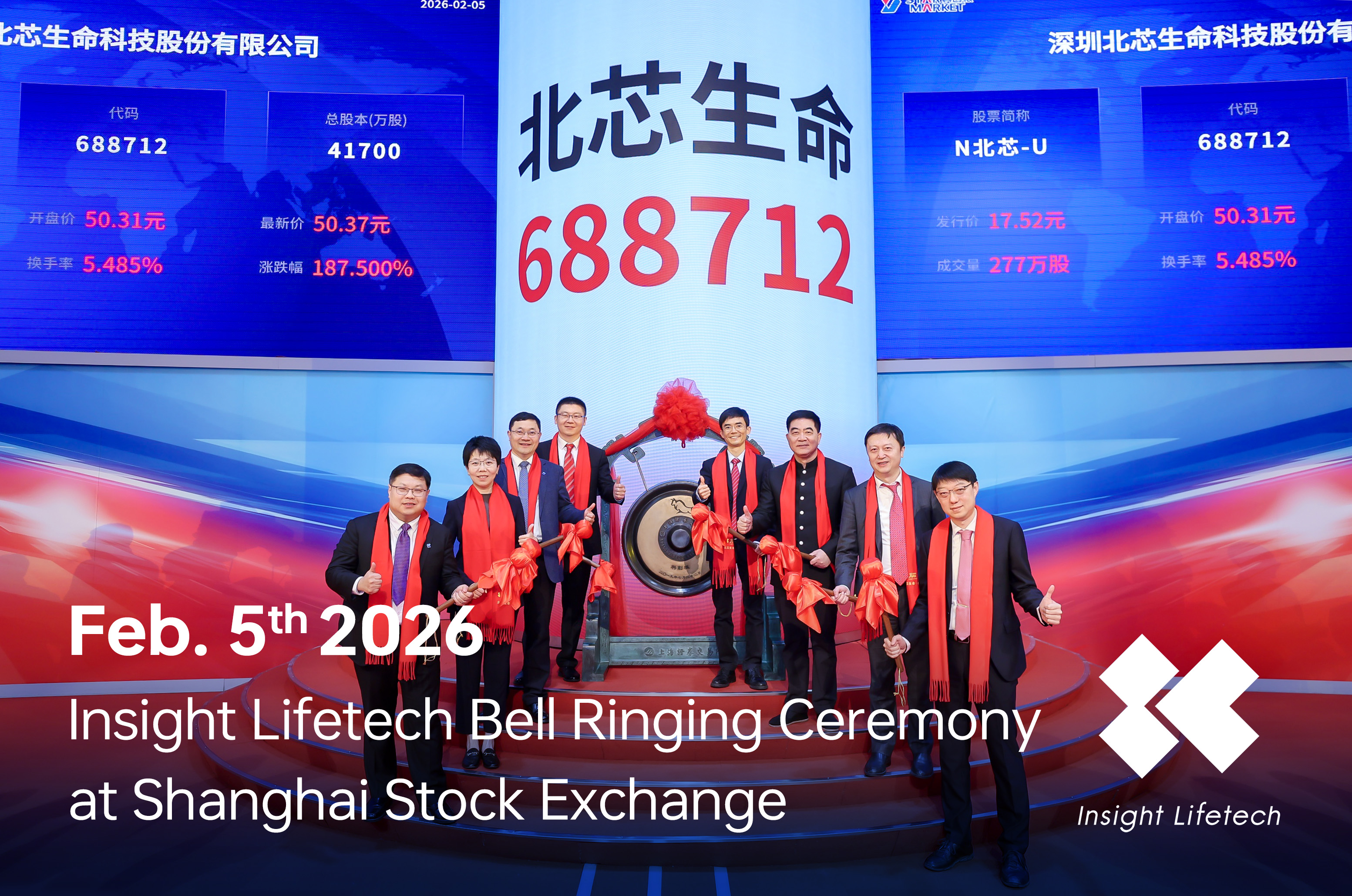 Shanghai, China – February 5, 2026 – Insight Lifetech, a leading innovator in the cardiovascular field, marked a historic milestone today as it officially rang the listing bell at the Shanghai Stock Exchange (SSE), kicking off its journey as a publicly traded company and reinforcing its commitment to its core mission: “To Transform Healthcare through Innovation and Quality.”